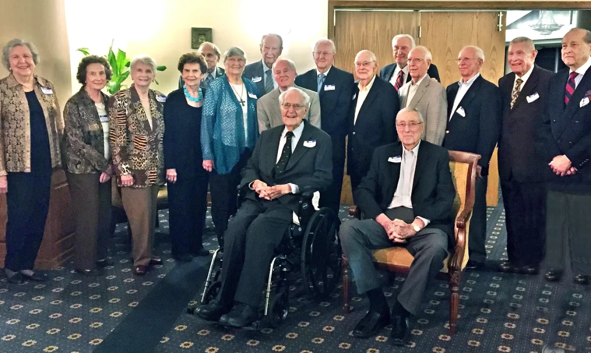 C. E. Byrd Alumni from the class of 1946 at the East Ridge Country Club formal dinner on October 15, 2016 Seated: Jimmie Brown and Ralph Brown, L to R: Jo Mills Row, Katharine Caruthers, Geraldine Vantien, Joyce Hardin Andrews, Frank Robinson, Vanette Keith, John Long, John Caruthers, T. O. Perry, Sam Talbot, Don Hathaway, Lewis Harris, Cecile Harris, Jim Leisk, and …