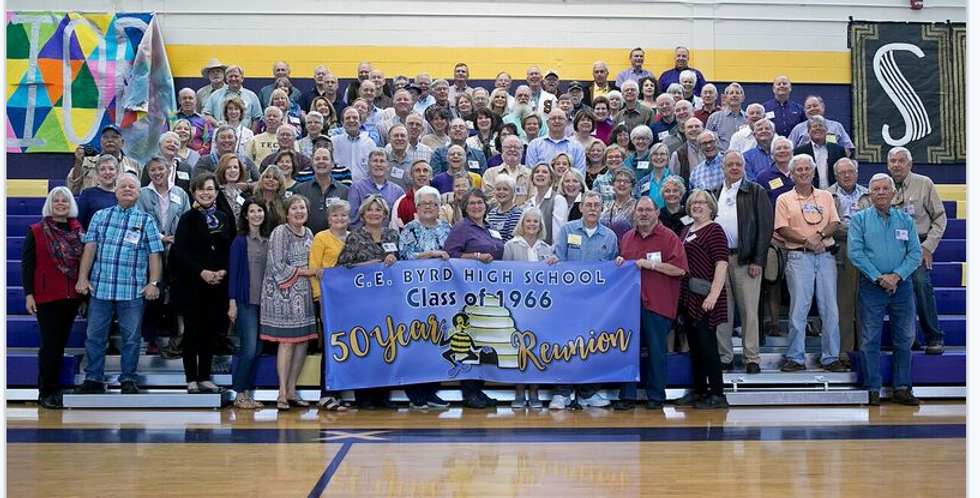 148 Alumni from the class of 1968 attended their 50th reunion on the weekend of April 27-28. It was a great weekend of renewing friendships and remembering our days at C. E. Byrd High School First Row (L – R) Nancy Smith, Ginger Montgomery Cobb, Jo Giddens, Kathryn Tatum Land, Nancy Monzingo, Julia Thornton, Lan DeGenerous, Mary Alice Rountree, Peggy Mayfield Gouras, …